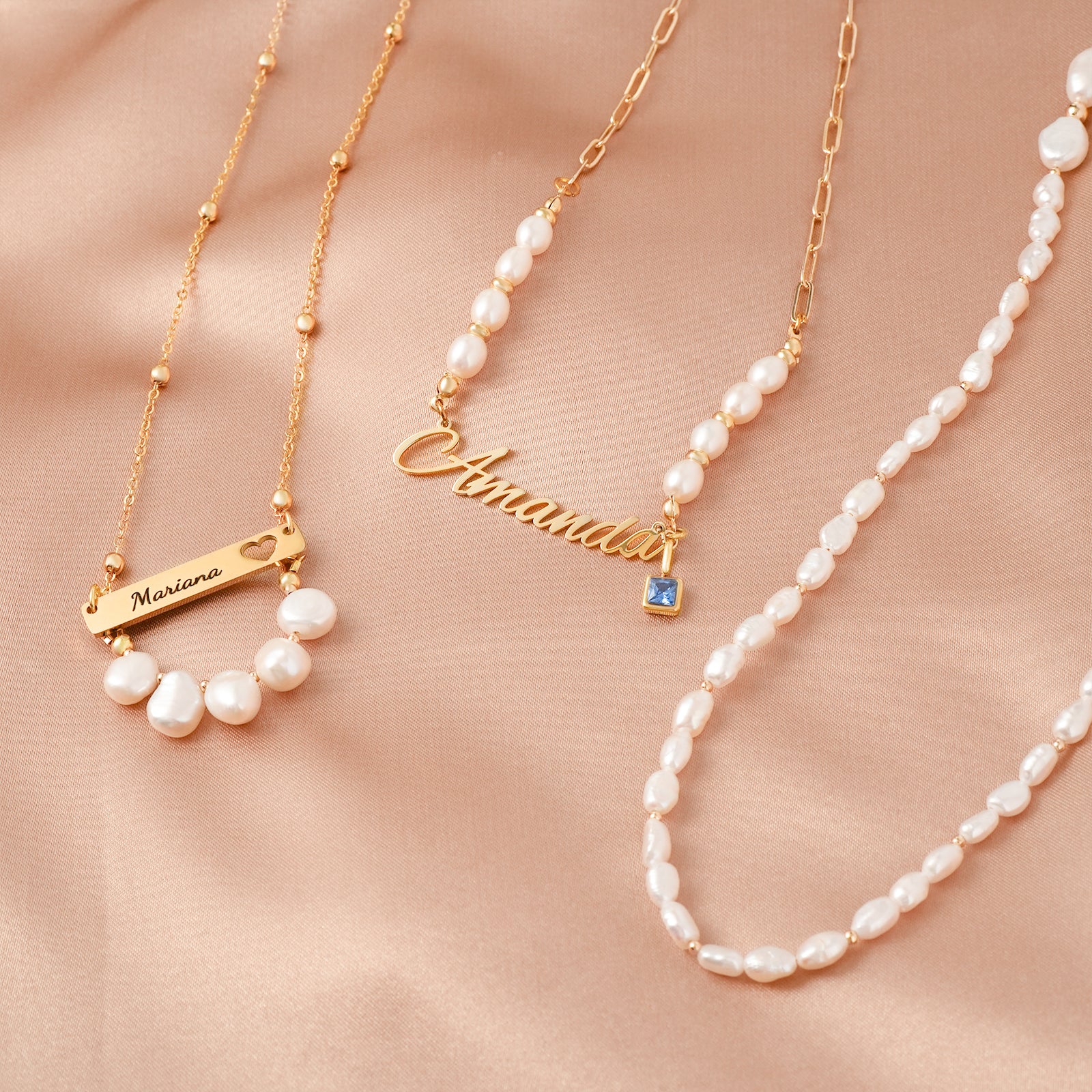 Combine elegant pearls with personalized designs. Each necklace can be engraved with a special name or date, making it a timeless symbol of love and appreciation.